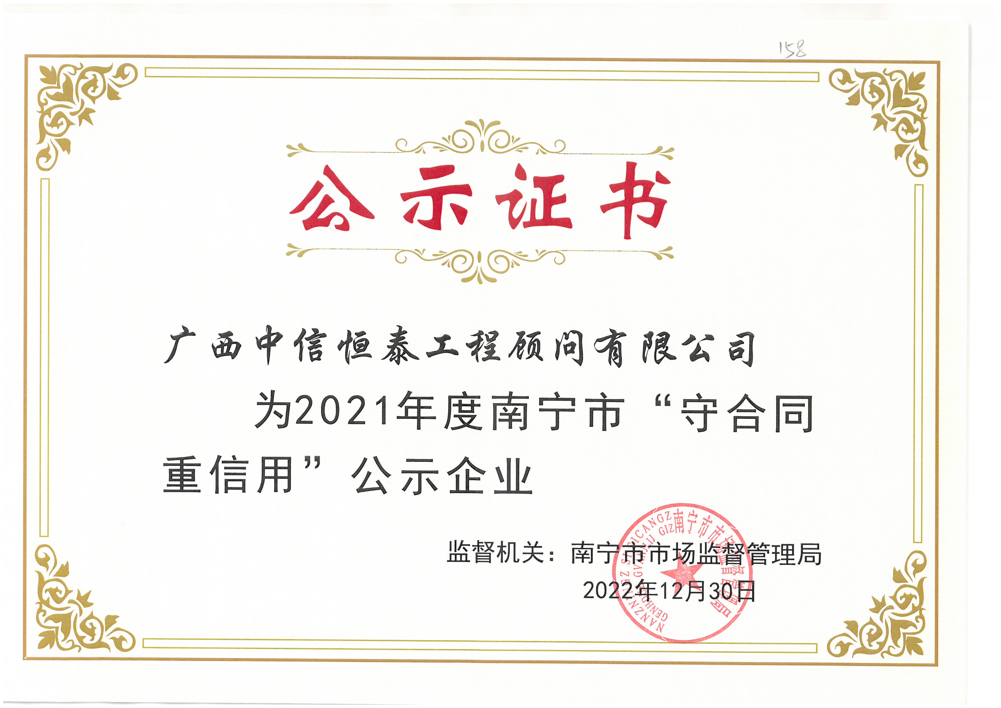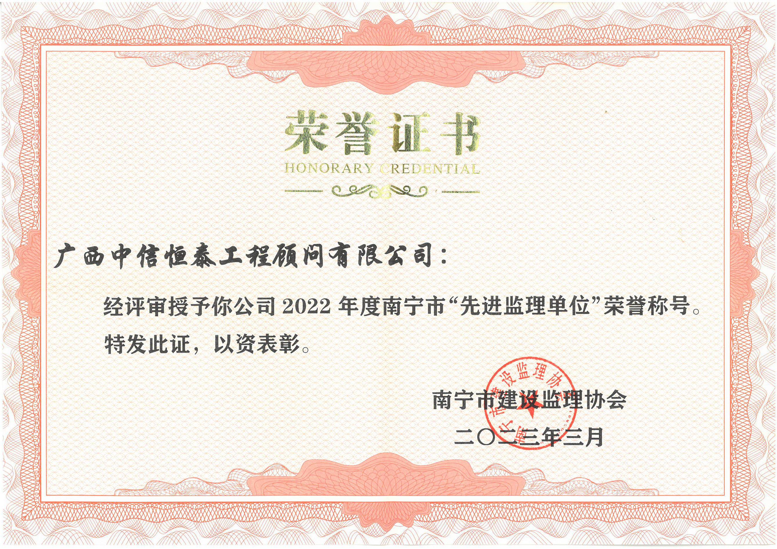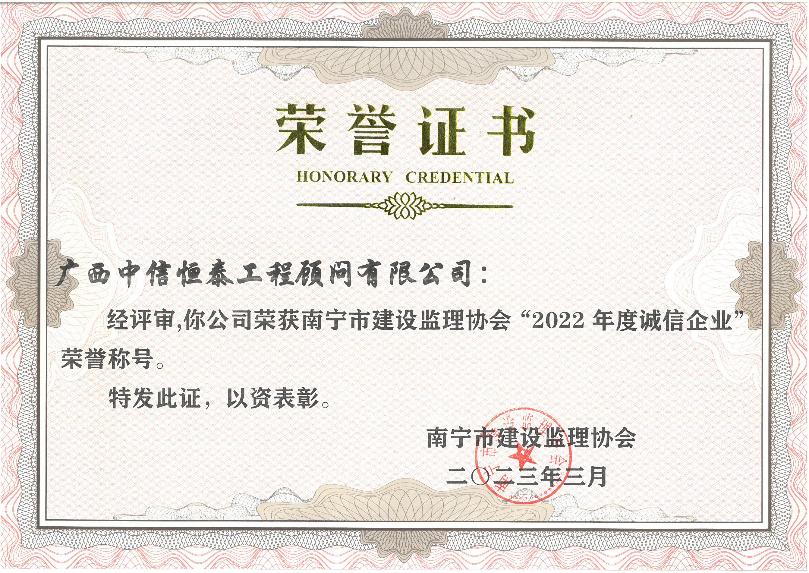 南寧市建設監(jiān)理協(xié)會“2022年度誠信企業(yè)”