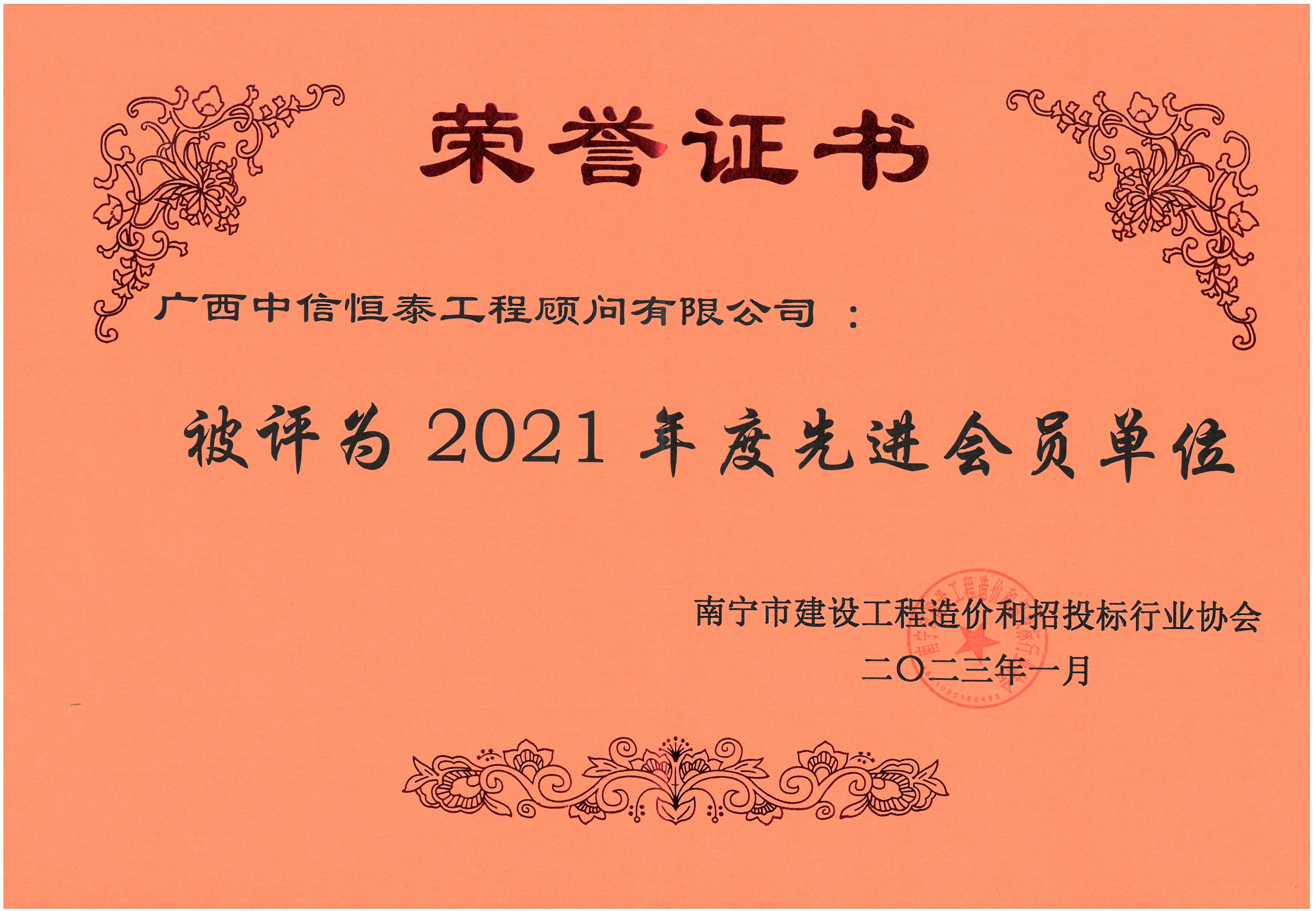 2021年度南寧市建設工程造價和招投標行業(yè)協(xié)會先進會員單位