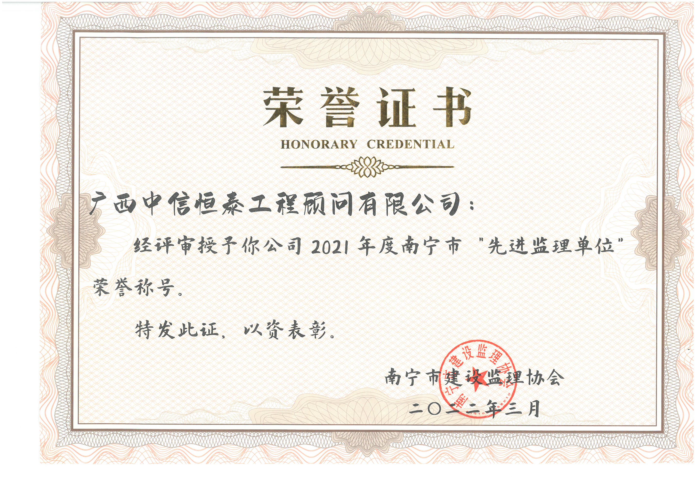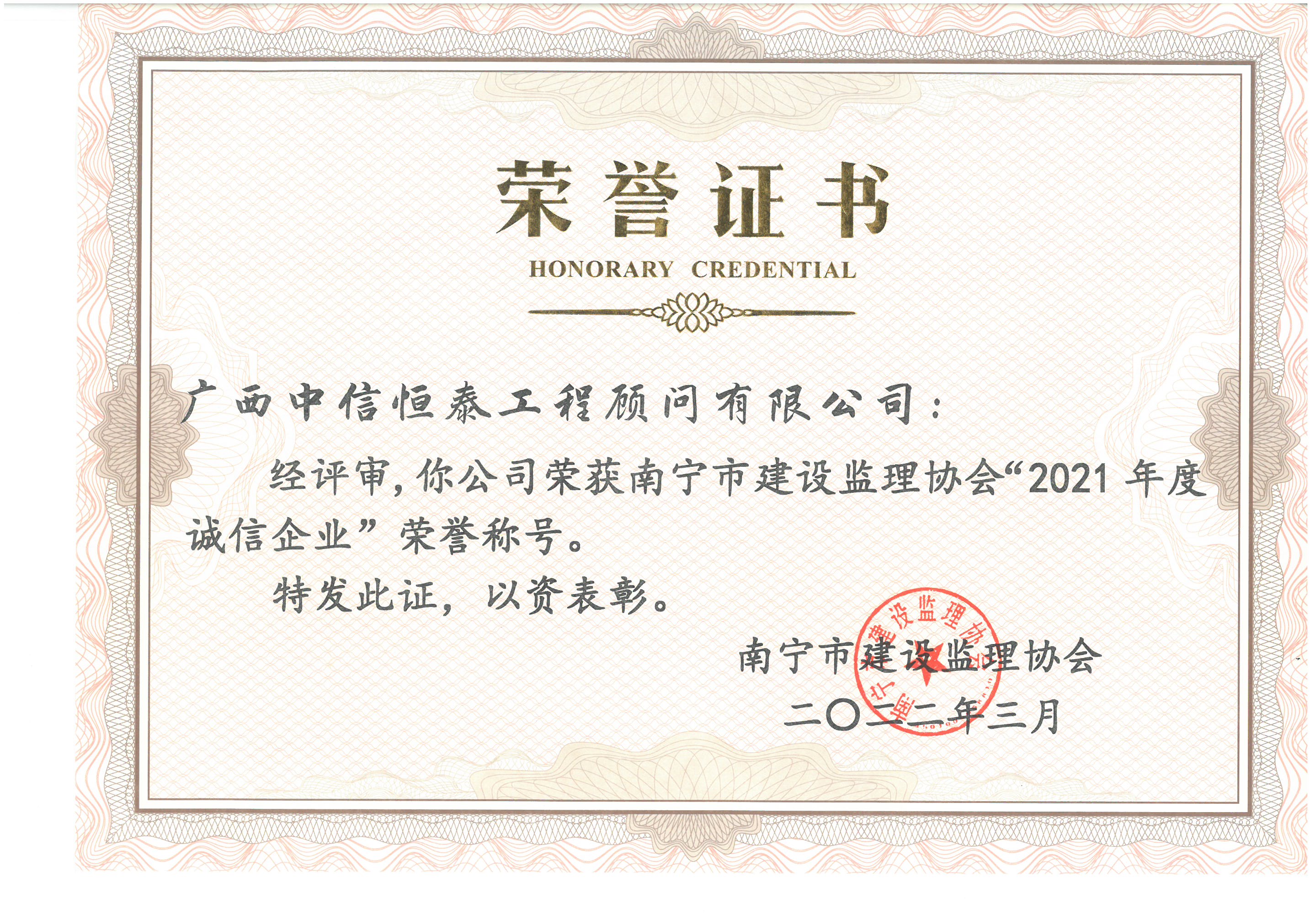 南寧市建設(shè)監(jiān)理協(xié)會“2021年度誠信企業(yè)”