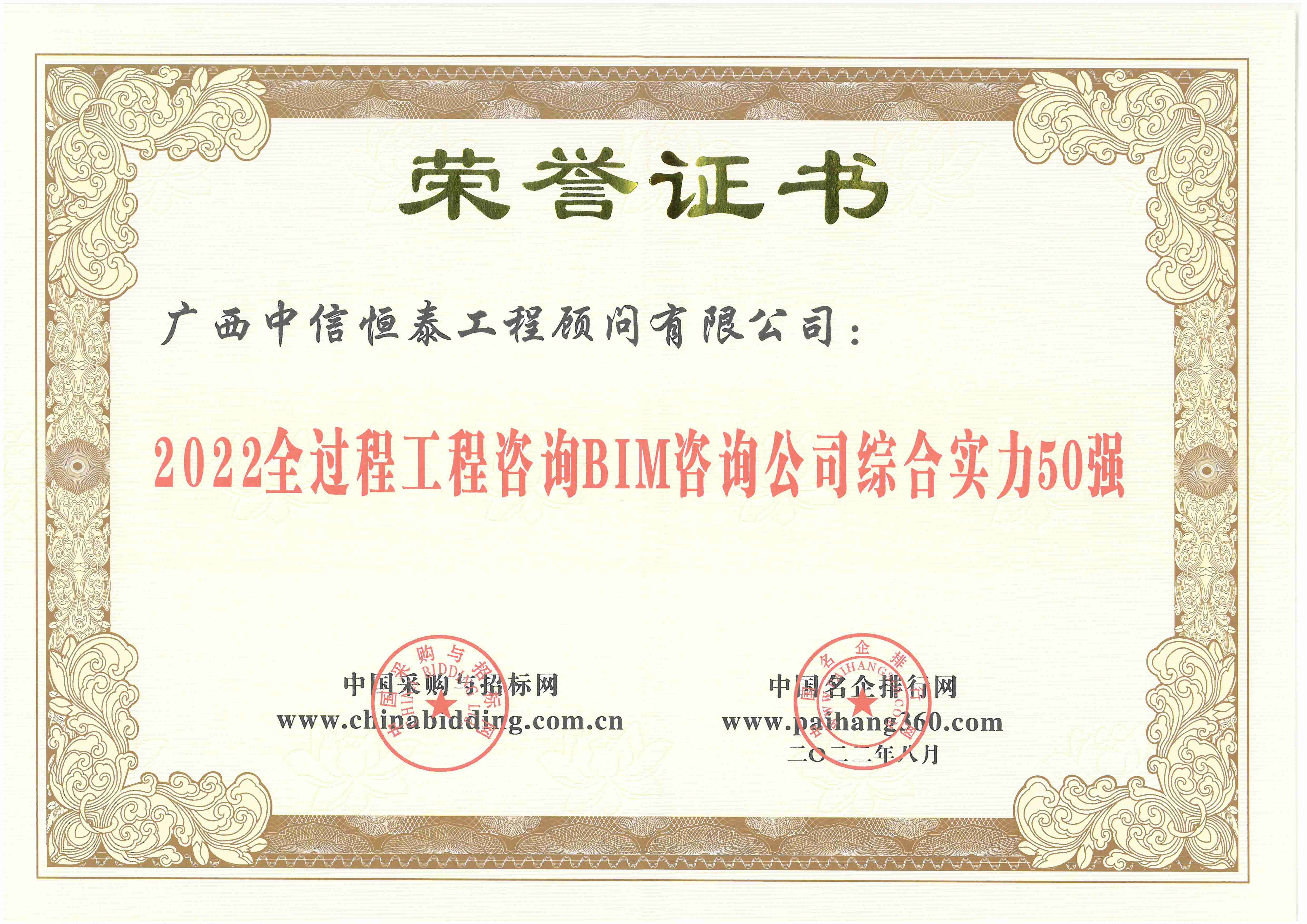 2022全過程工程咨詢BIM咨詢公司綜合實(shí)力50強(qiáng)
