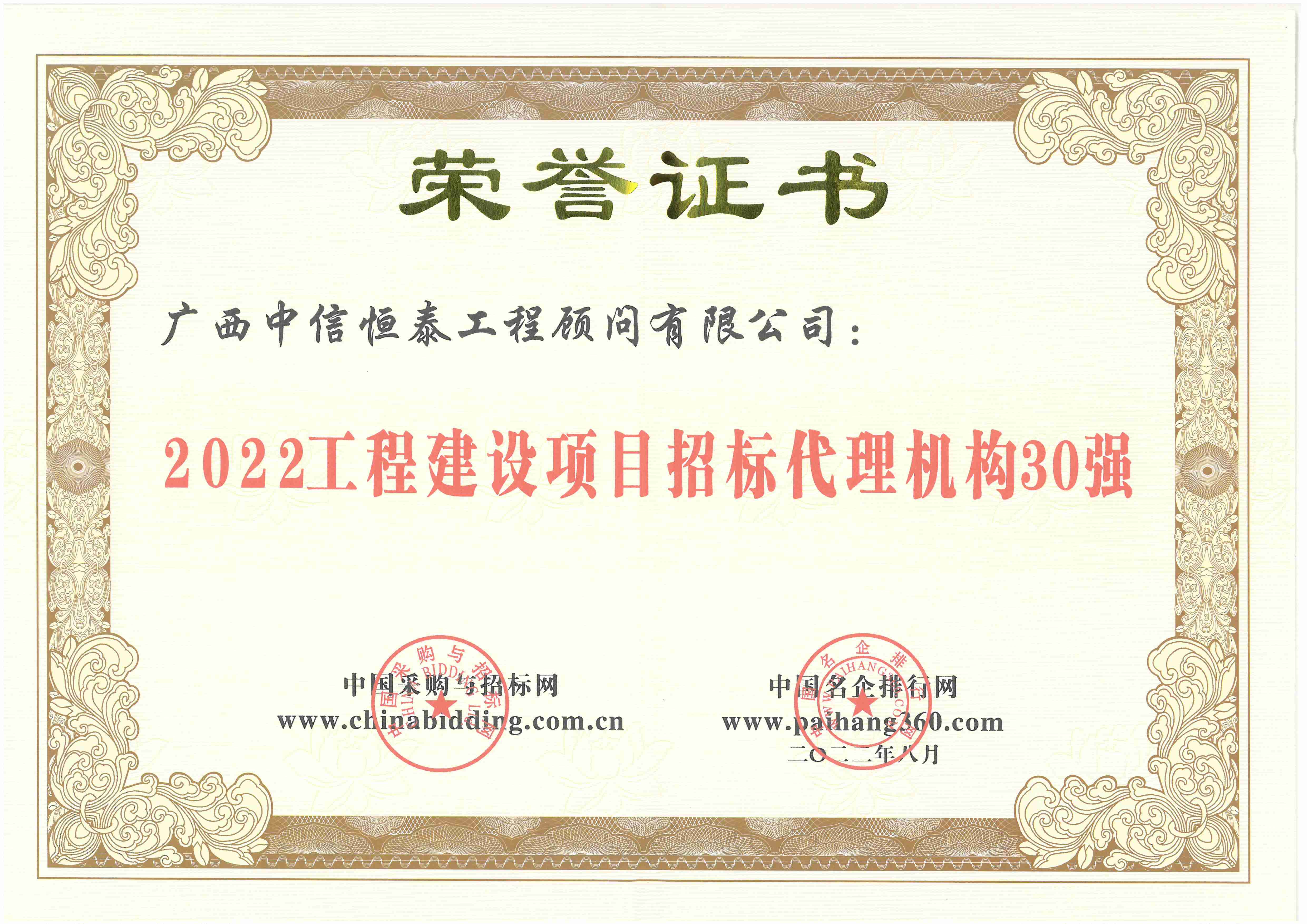 2022工程建設(shè)項(xiàng)目招標(biāo)代理機(jī)構(gòu)30強(qiáng)