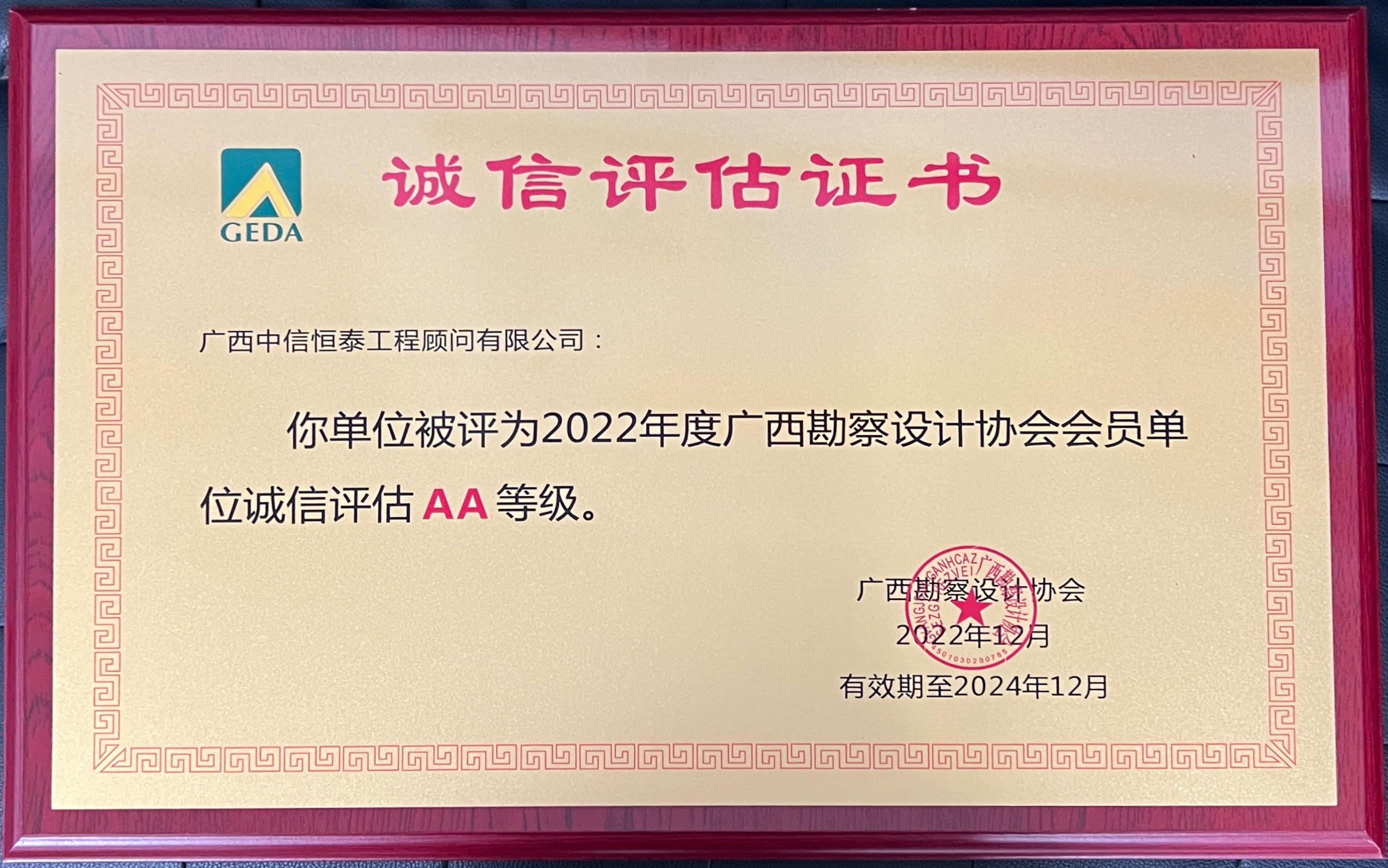 廣西勘察設(shè)計(jì)協(xié)會會員單位誠信評估AA級