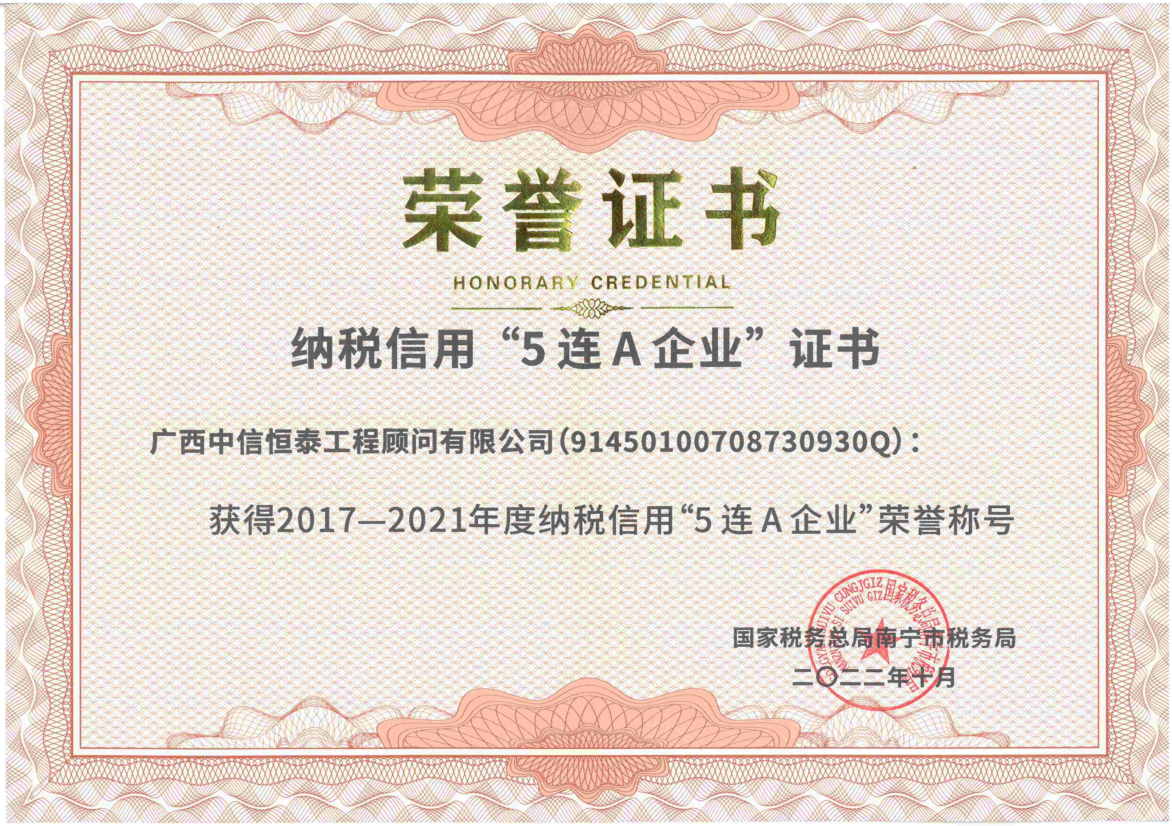 2017-2021年度納稅信用“5連A企業(yè)”榮譽(yù)稱號