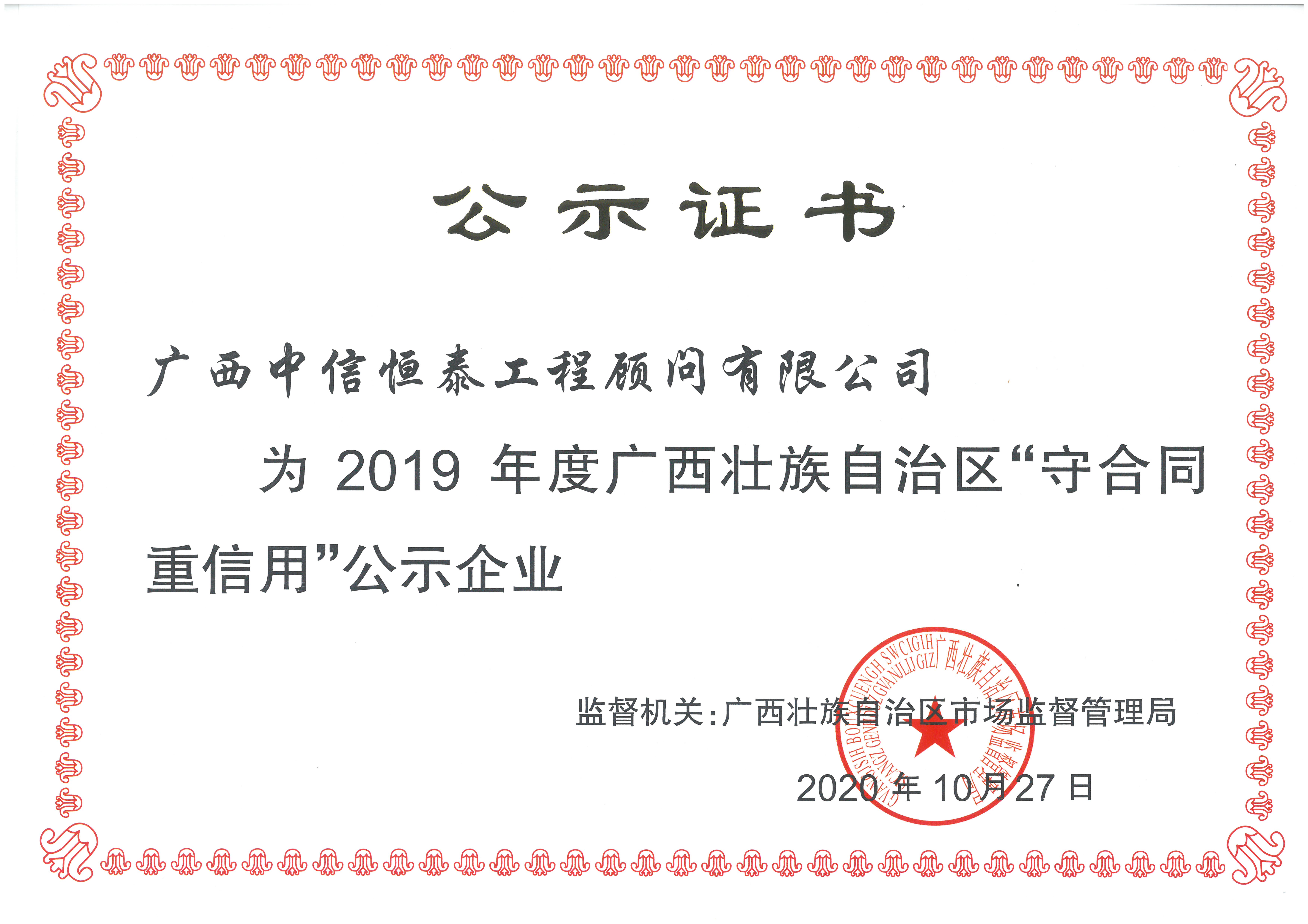 2019年度廣西守合同重信用企業(yè)