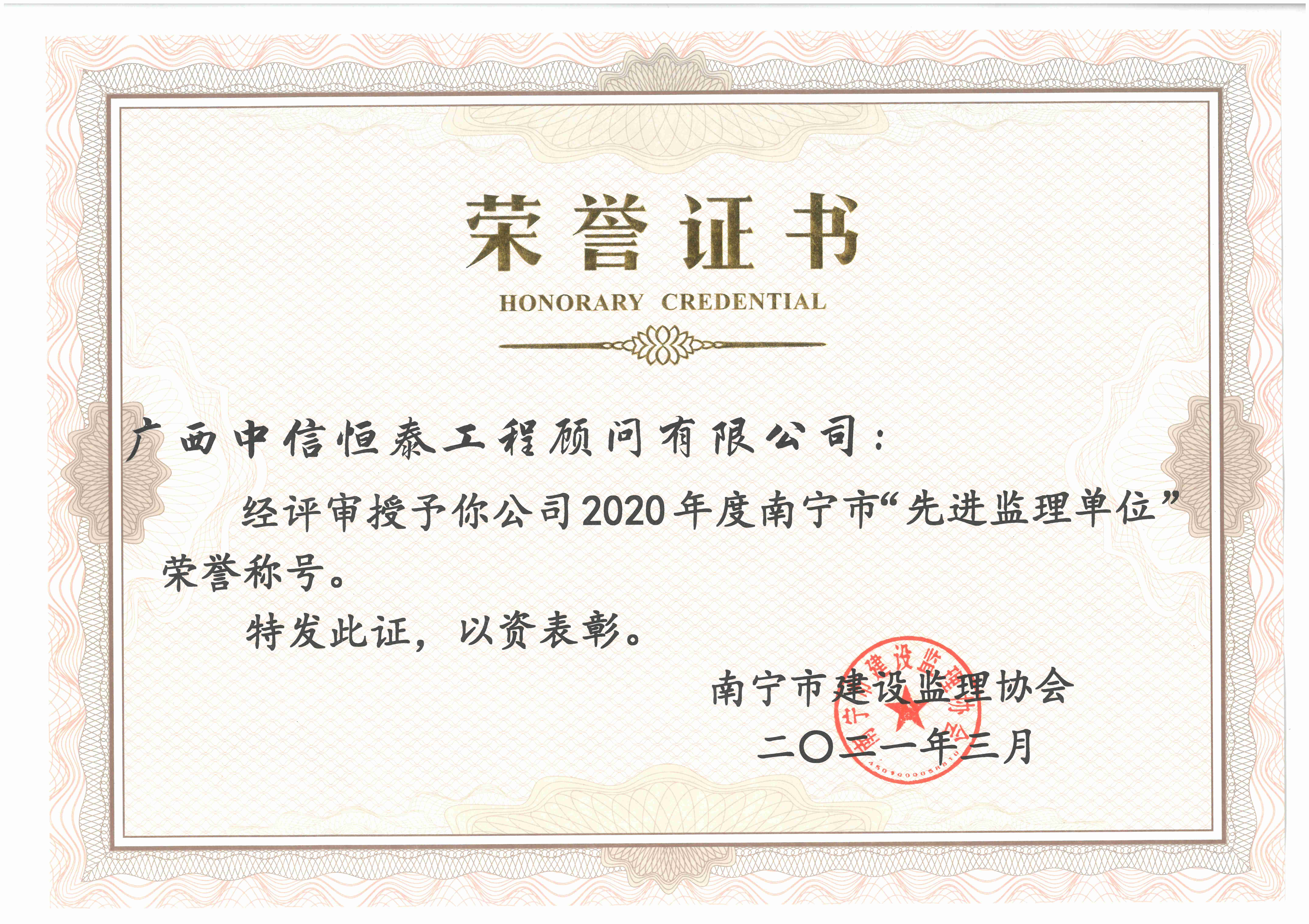 2020年度南寧市先進監(jiān)理單位