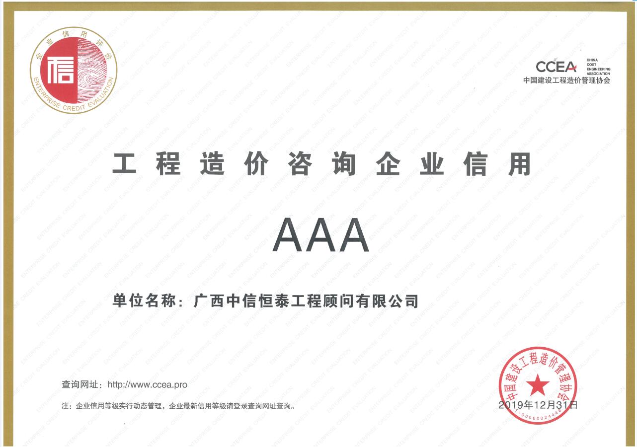 廣西造價咨詢信用評價AAA等級證書2020-2023